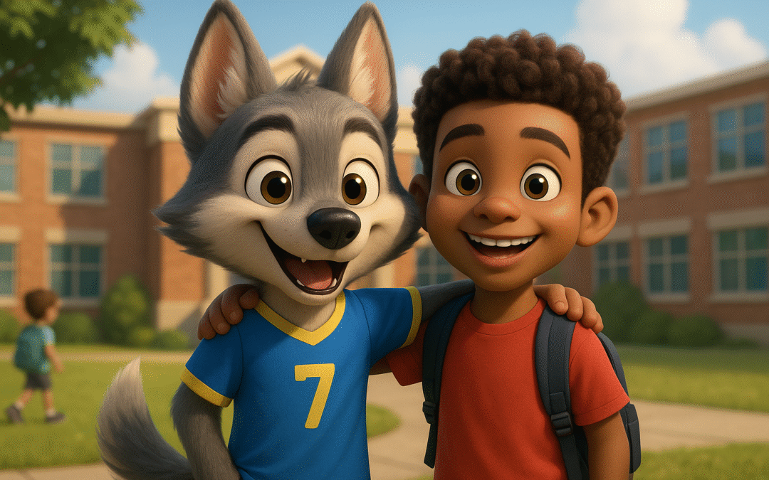 Wilczek Boniś, z małym plecakiem zarzuconym na jedno ramię, czuł się tu jak ryba w wodzie. No, może bardziej jak wilk w lesie! 😉 Jego najlepszymi przyjaciółmi w klasie 2B byli ci sami chłopcy, z którymi grał w „Walecznych Wilczkach”: szybki jak błyskawica Franiu, zwinny Krzyś i silny jak niedźwiedź Jaś.